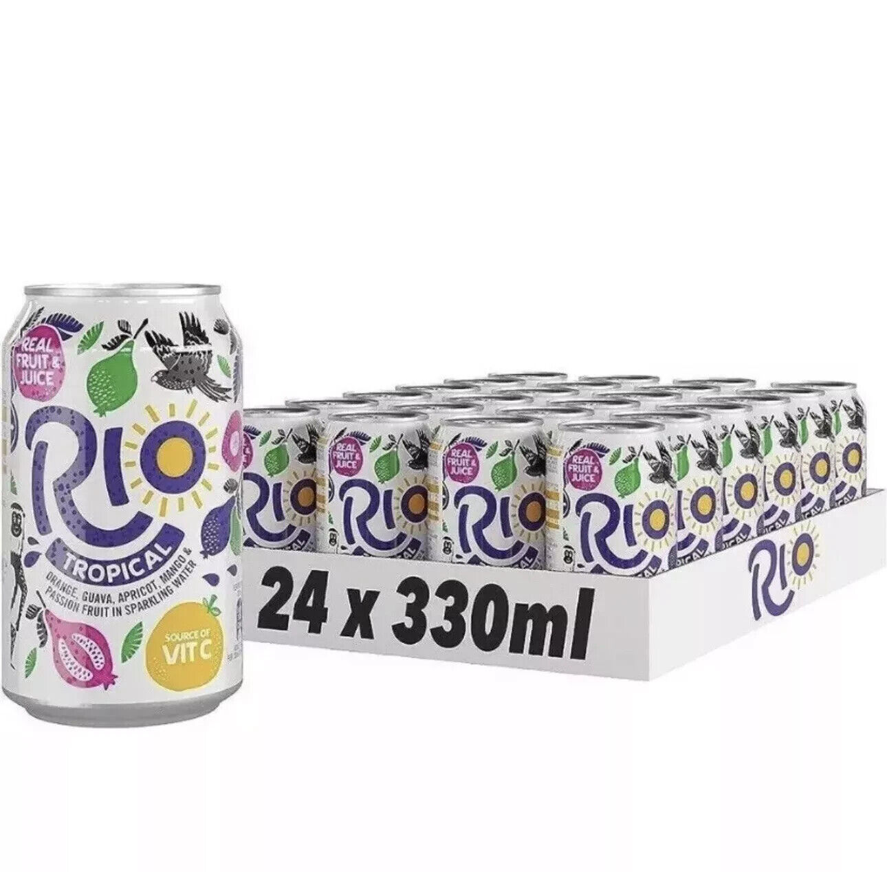 Rio Tropical Original Fizzy 24 Cans Soft Drink Pack with Real Orange, Apricot, Mango, Passion Fruit and Guava Juice Flavours Lightly Sparkling Cans of Pop with Vitamin C 24x330ml